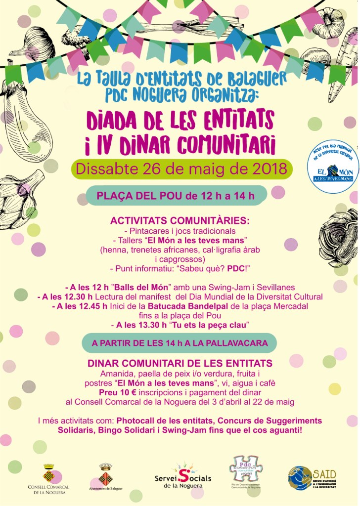 La Taula d'Entitats de Balaguer del PDC de la Noguera organitza el 4t Dinar Comunitari