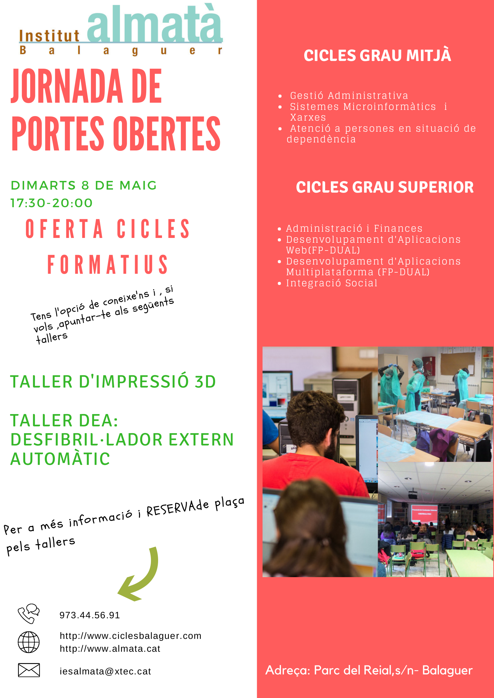 L'Institut Almatà de Balaguer organitza el proper dimarts dia 8 de maig una jornada de portes obertes per donar a conèixer els cicle formatius que es poden cursar al centre.