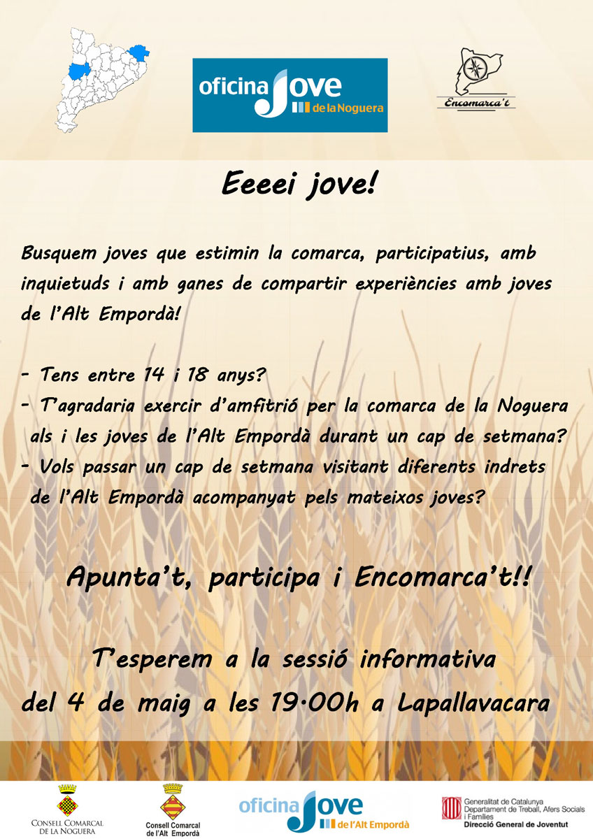El casal Lapallavacara acollirà el proper 4 de maig una sessió informativa sobre el programa, ''Encomarca't''.