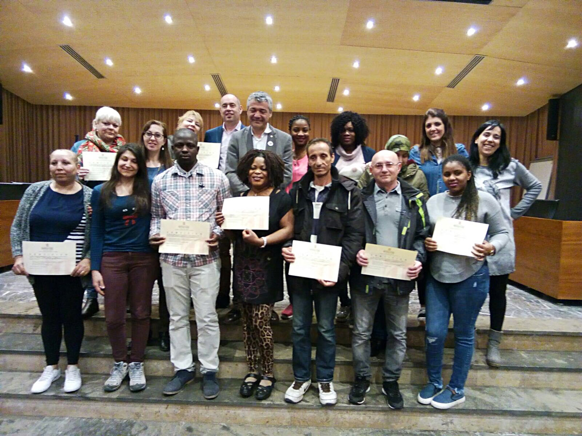 El secretari d'Igualtat, Migracions i Ciutadania, Oriol Amorós, entrega a Balaguer els diplomes als alumnes del Programa de Reincorporació al Treball.