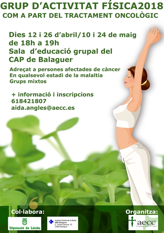 L'aeec- Catalunya Contra el Càncer organitza un grup d'activitat física com a part del tractament oncològic. Un activitat gratuïta que es farà al CAP de Balaguer.