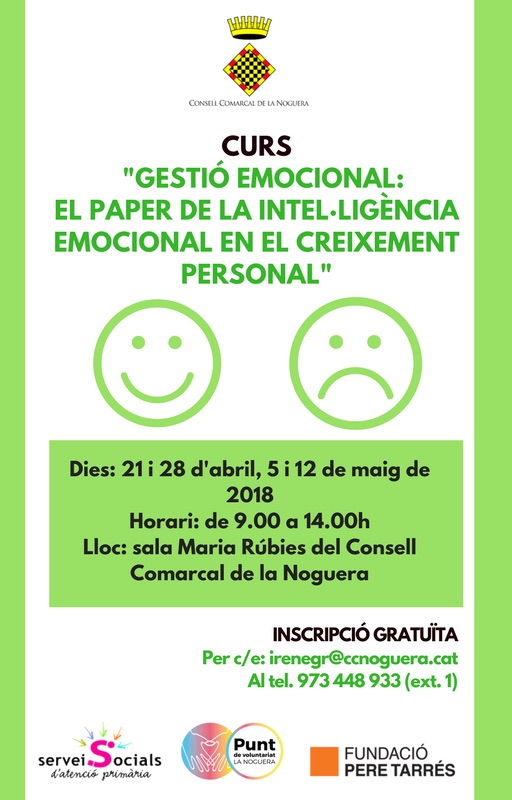 El punt de voluntariat de la Noguera organitza el curs sobre gestió emocional 'El paper de la intel-ligència emocional en el creixement persona'.