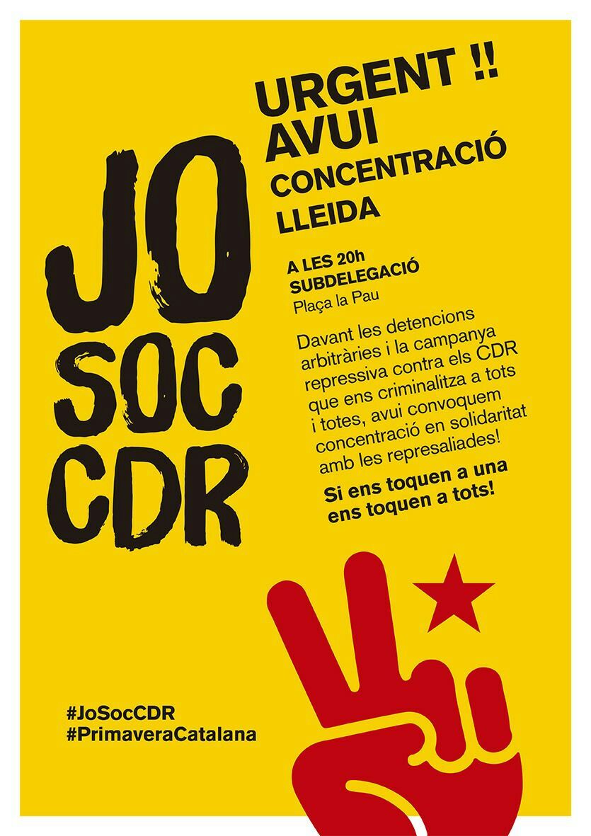 El CDR de Balaguer es suma a la concentració convocada avui a les 8 del vespre a la Plaça la Pau de Lleida.