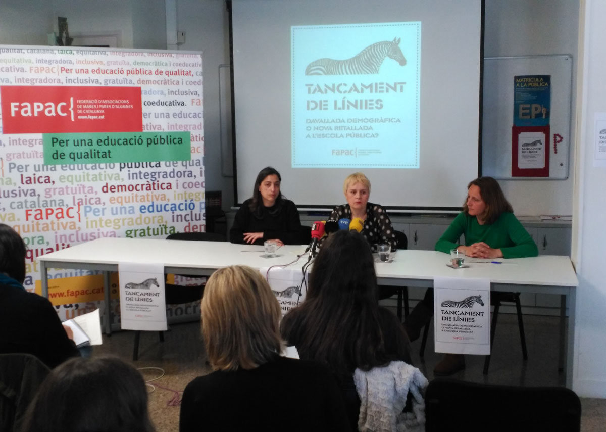 La FaPaC denuncia que el tancament de línies públiques no respon a una davallada demogràfica sinó a una intenció de privatitzar l'educació.