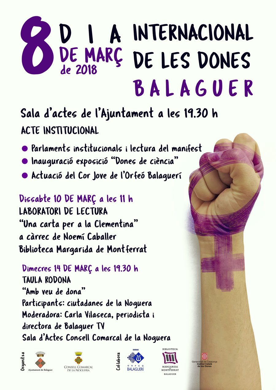 El moviment feminista crida a fer vaga laboral, educativa, de cures i consum el proper dijous 8 de març amb motiu del Dia Internacional de les Dones. Es faran també manifestacions arreu del país, una d'elles a Balaguer.