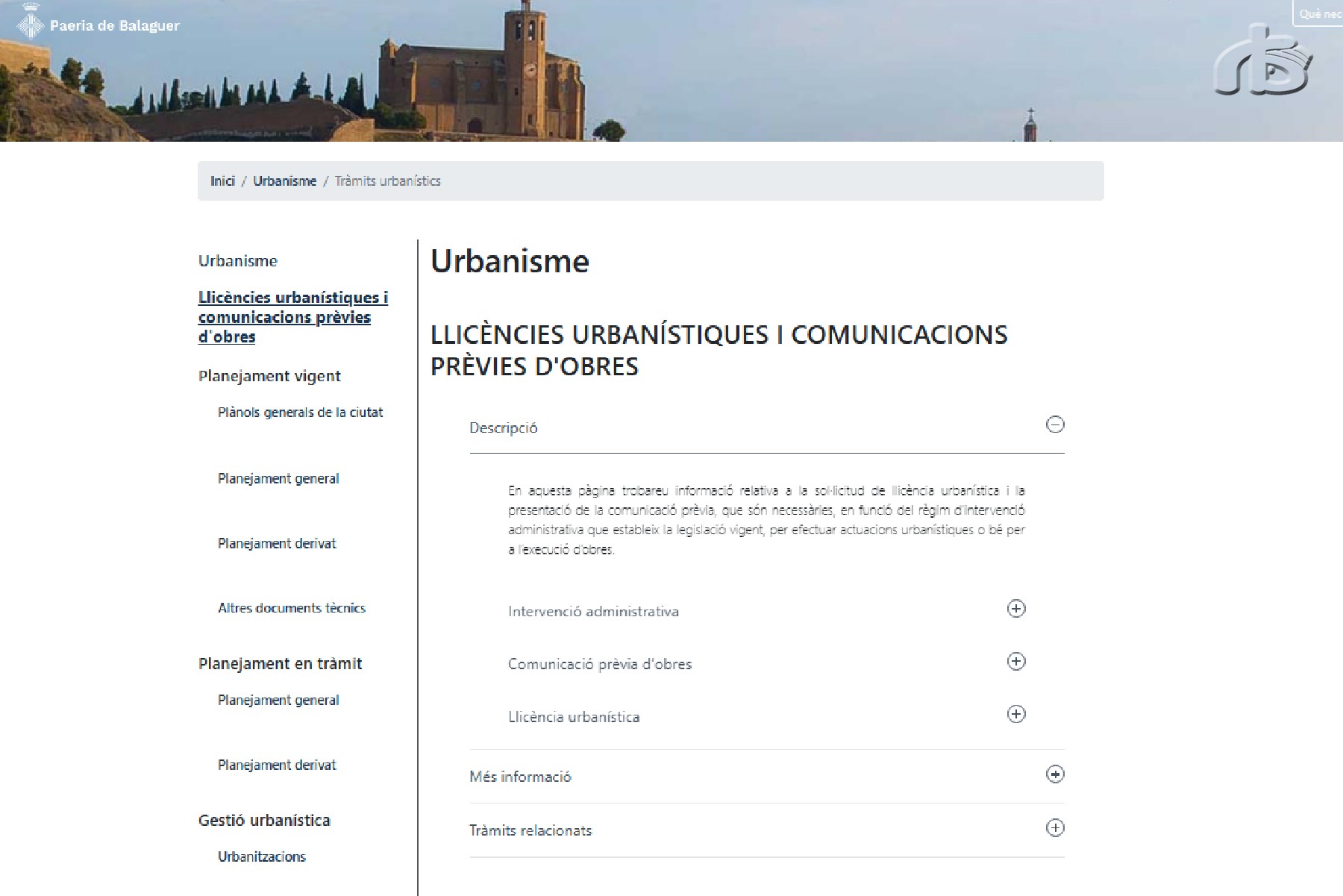 La Paeria de Balaguer posa en marxa la plataforma per pagar online les llicències d'obres i comunicacions prèvies. El pagament únic inclou la taxa i també l'ICIO (Impost sobre Construccions, Instal·lacions i Obres)