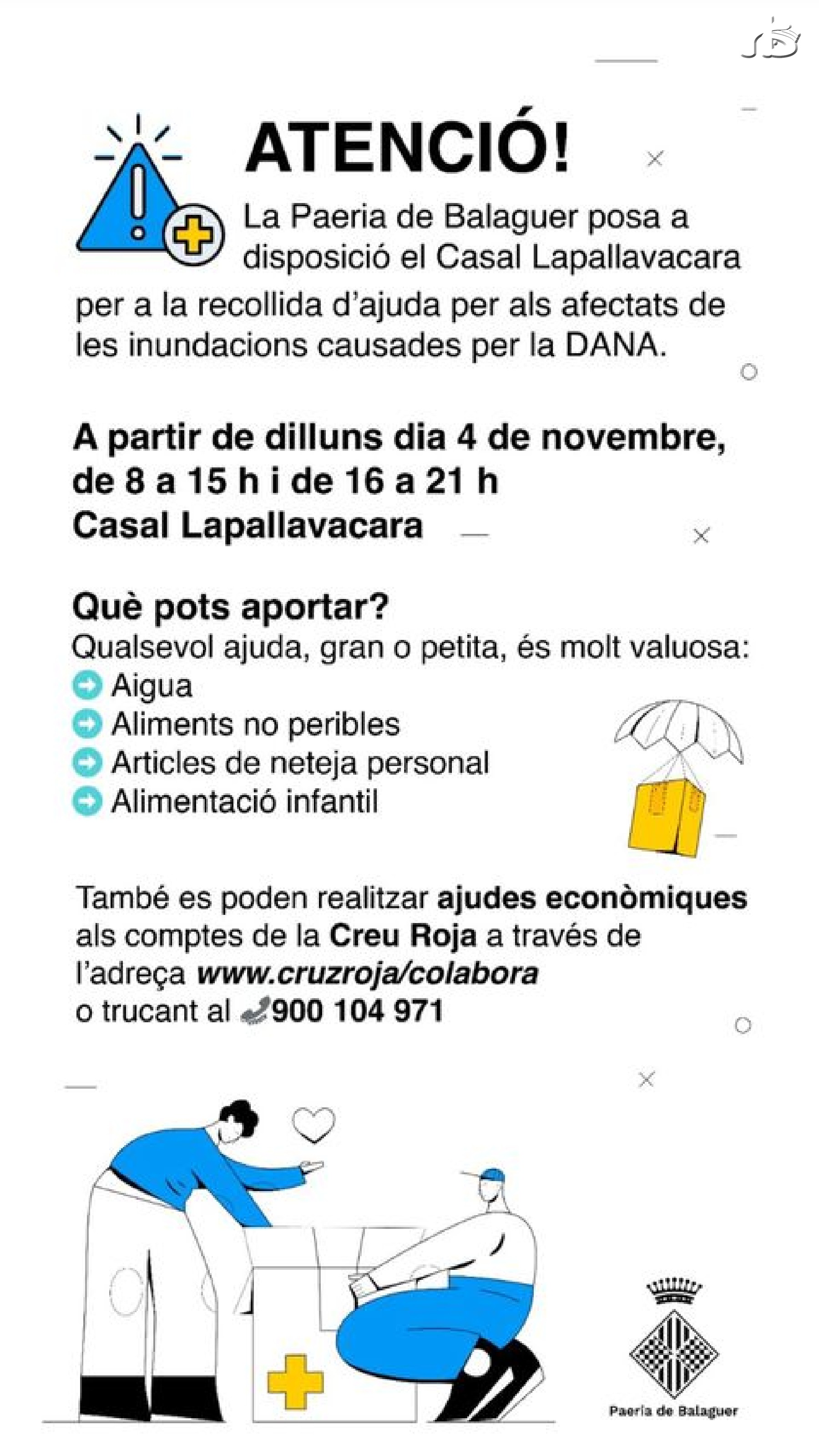 La Paeria de Balaguer ha iniciat aquest dilluns una campanya d'ajuda per als afectats de les inundacions causades per la DANA, en especial al País Valencià