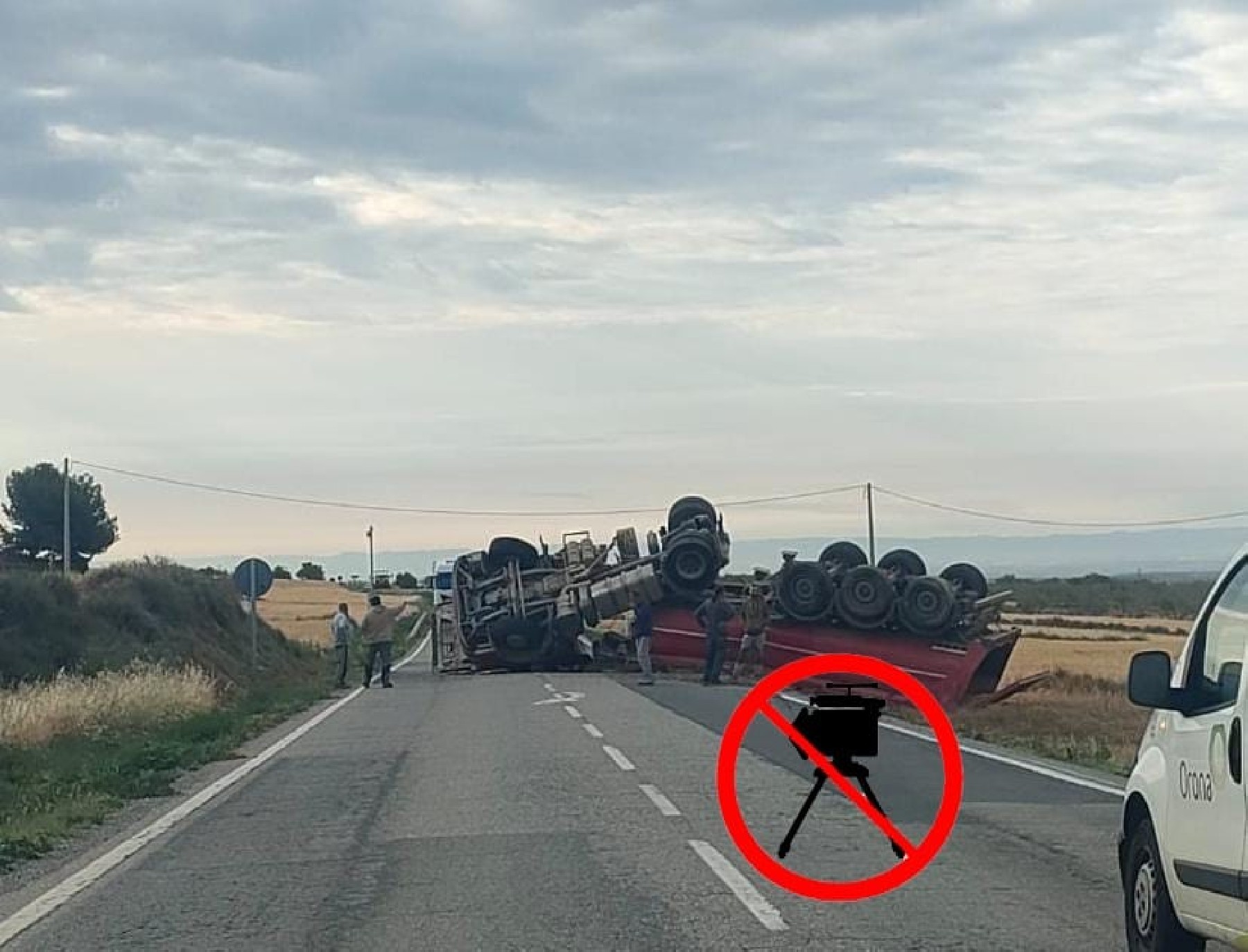 Un camió ha bolcat aquest matí en un accident a la carretera C-26 entre Castelló de Farfanya i Algerri. L'accident obliga a tallar la via en tots dos sentits
