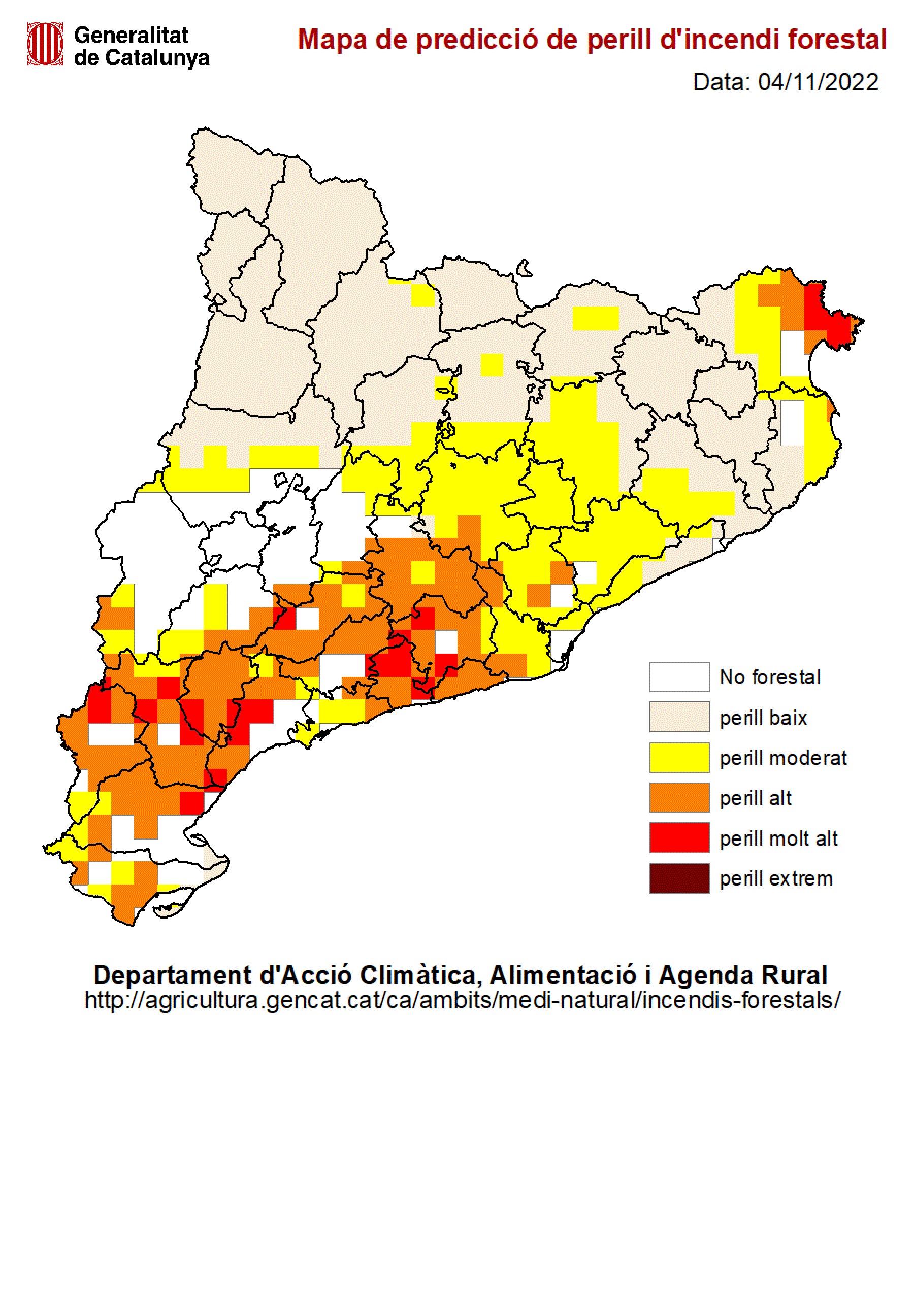 Acció Climàtica alerta d'un episodi d'alt risc d'incendi entre avui i demà. D'altra banda els Bombers reben 23 avisos per les ventades fins al migdia, la majoria a Lleida i la regió de Tarragona