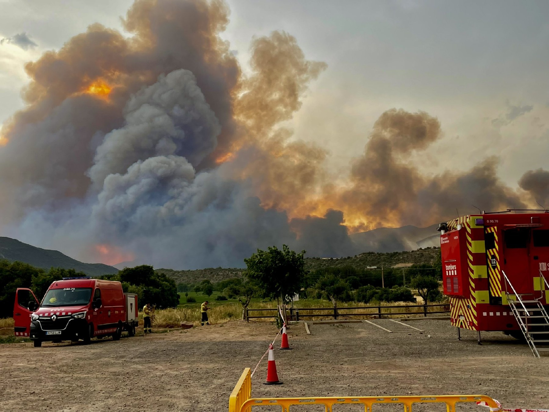 L'incendi d'Artesa de Segre afecta ja 500 hectàrees amb un potencial de fins a 20.000. Hi ha una setantena de persones evacuades i el municipi d'Alòs de Balaguer confinat