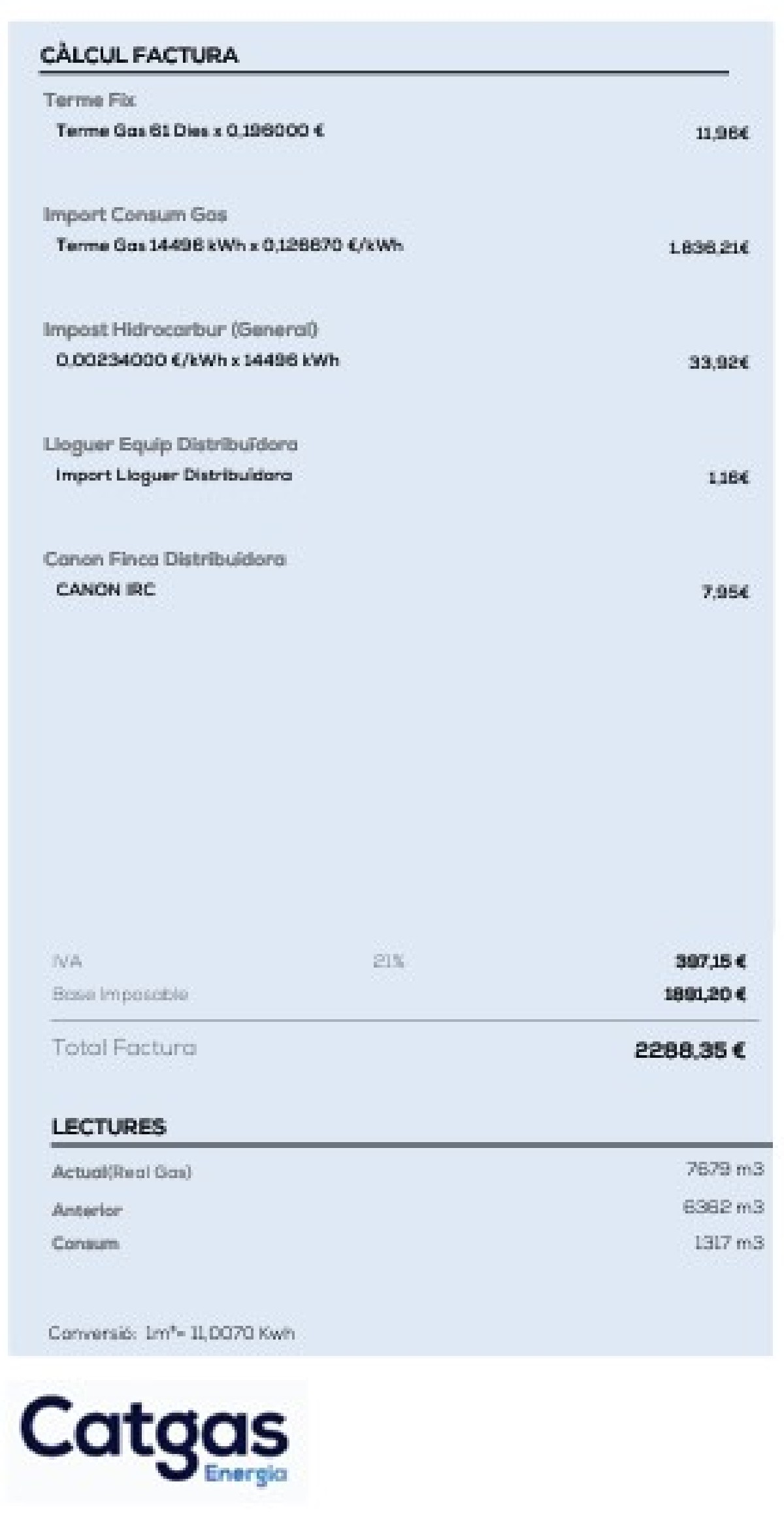 Un veí de Balaguer es queixa que ha rebut una factura de la companyia del gas de prop de 2.300 euros