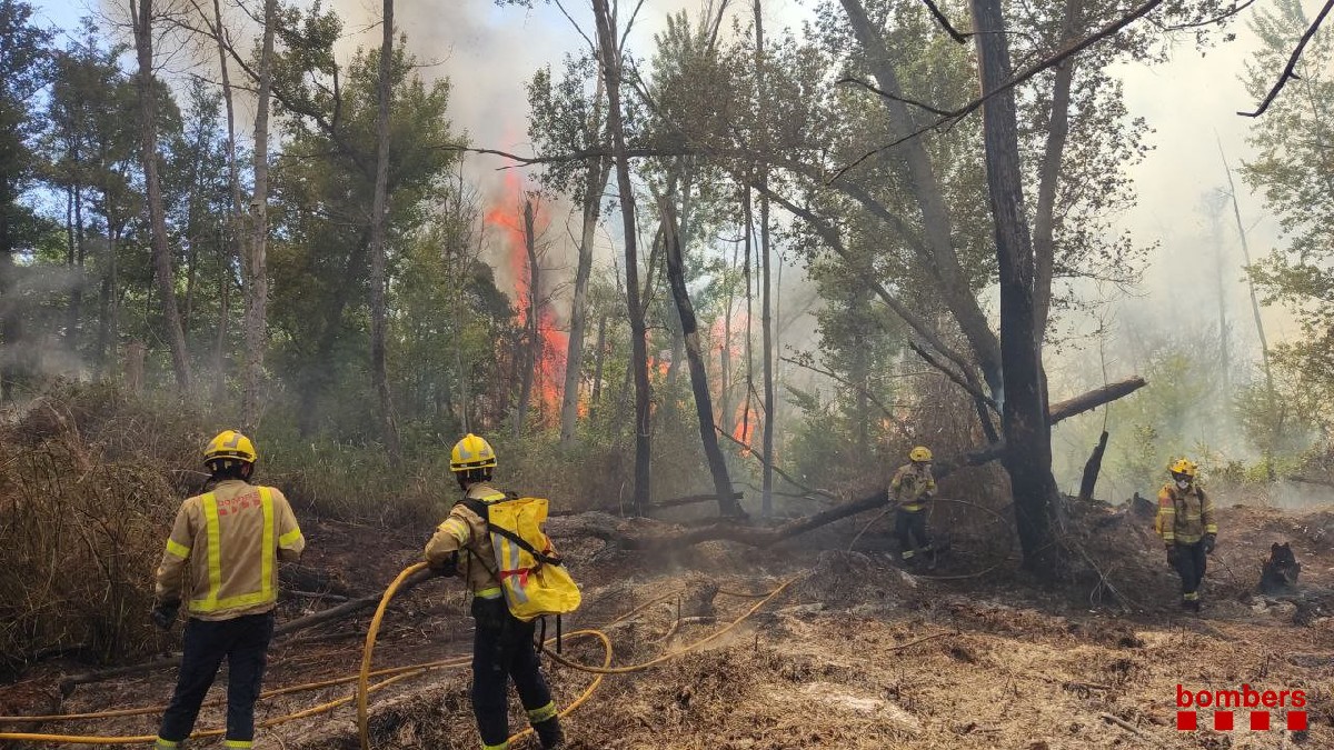 Els Bombers han treballat en un incendi de vegetació a Torrelameu. S'han cremat 16 hectàrees de bosc de ribera i ha estat necessària la intervenció de mitjan aeris per controlar el foc