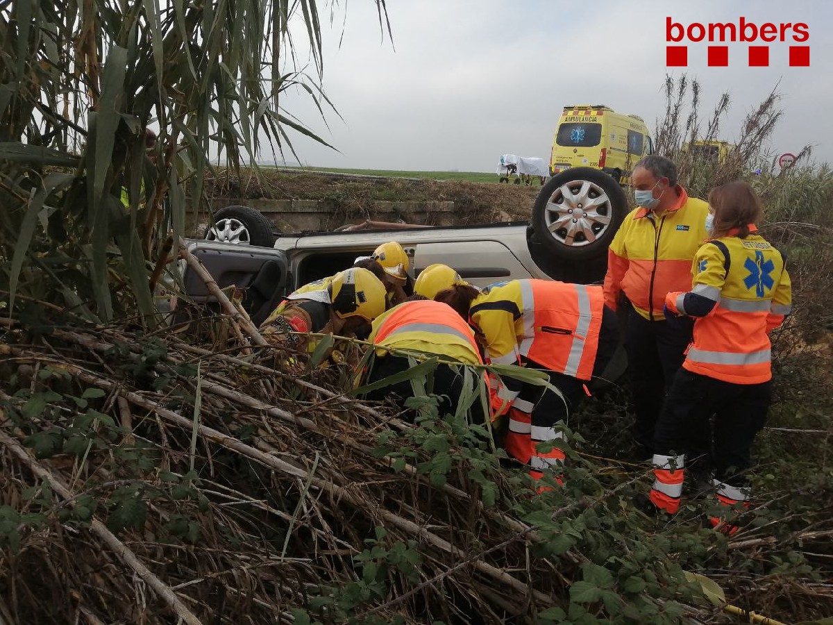 Els Bombers van haver de rescatar aquest dissabte l'ocupant d'un vehicle accidentat a la C-26 a Castelló de Farfanya. El cotxe va sortir de la via, bolcant en unes canyes i atrapant al seu conductor