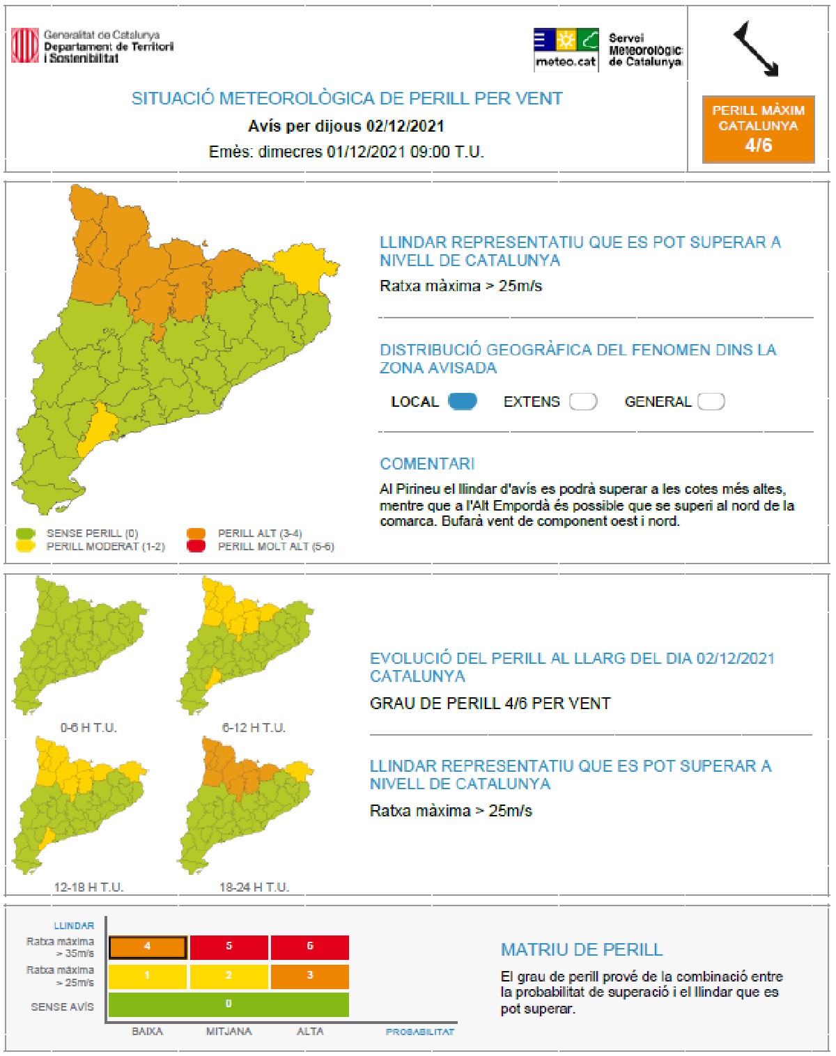 Protecció Civil de la Generalitat activa l'Alerta del pla VENTCAT per fort vent a partir de demà al Pirineu i Prepirineu