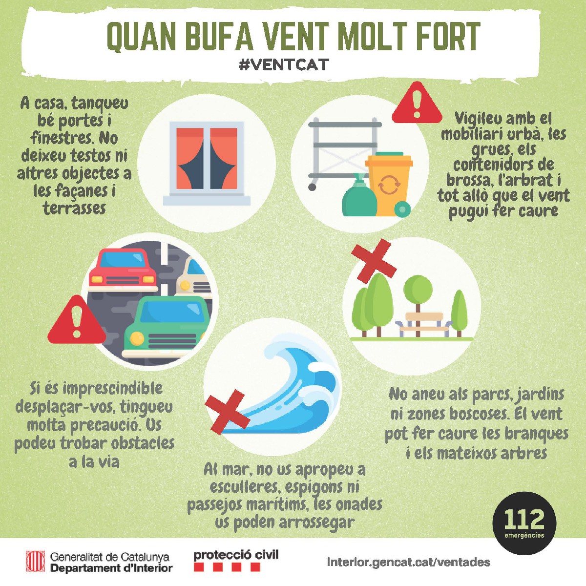 Protecció Civil manté l'Alerta per fort vent demà, que pot ser intens sobretot al prelitoral de Tarragona, Barcelona i cotes altes del Pirineu