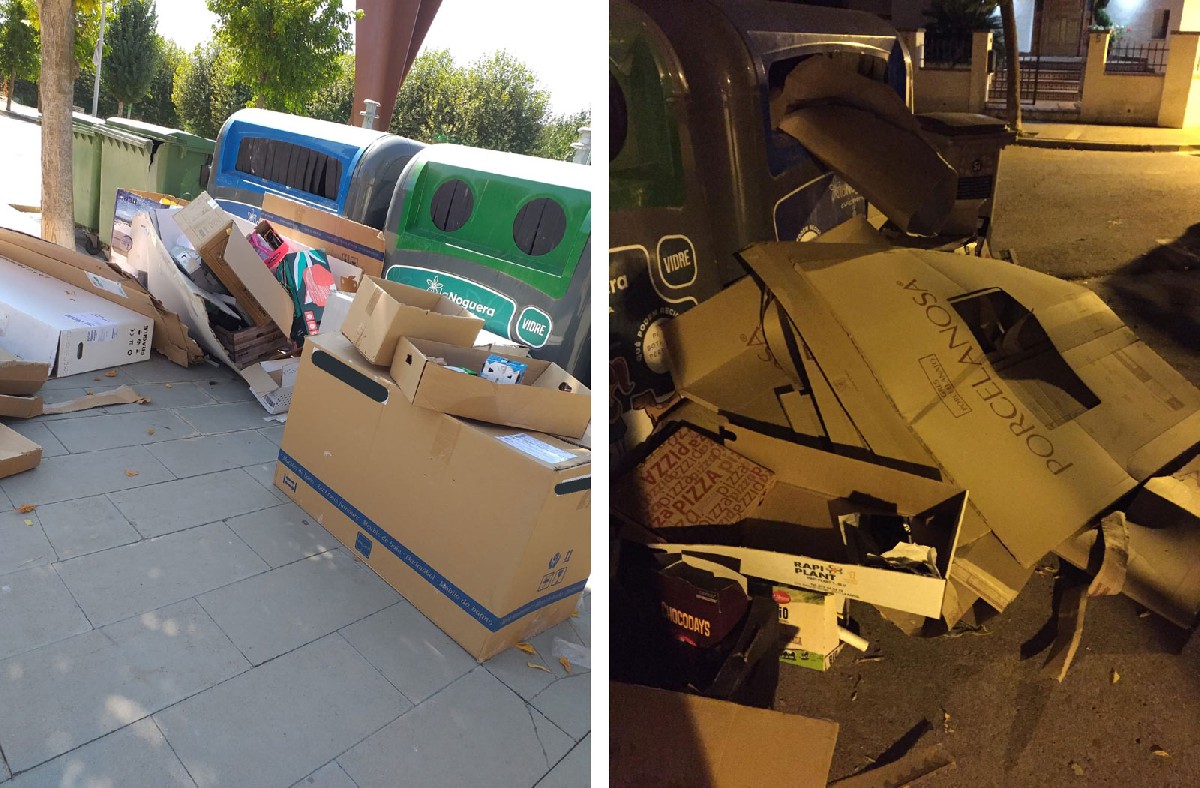 La Guàrdia Urbana de Balaguer identifica i sanciona els responsables de diversos abocaments de cartró a la via pública. La paeria recorda que els particulars han de fer ús dels contenidors blaus i les empreses de la deixalleria.