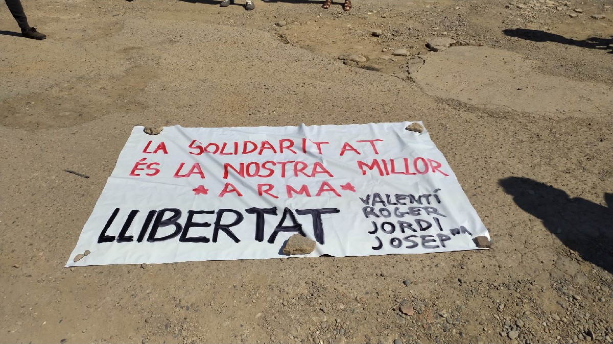 Surten en llibertat amb càrrecs els quatre membres del CDR de Balaguer detinguts per una crema de neumàtics de matinada a les vies del tren. Mig centenar de persones s'han concentrat davant la caserna de la Guàrdia Civil de Lleida per demanar-ne la lliber