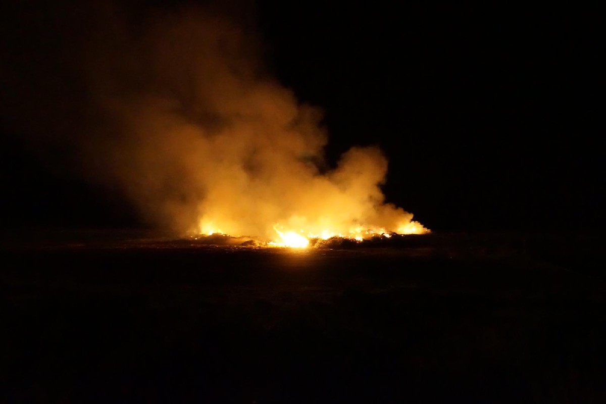 Els bombers treballen en un foc de matolls a la zona del pla d'Almatà, darrera del parc de bombers i l'institut Almatà.