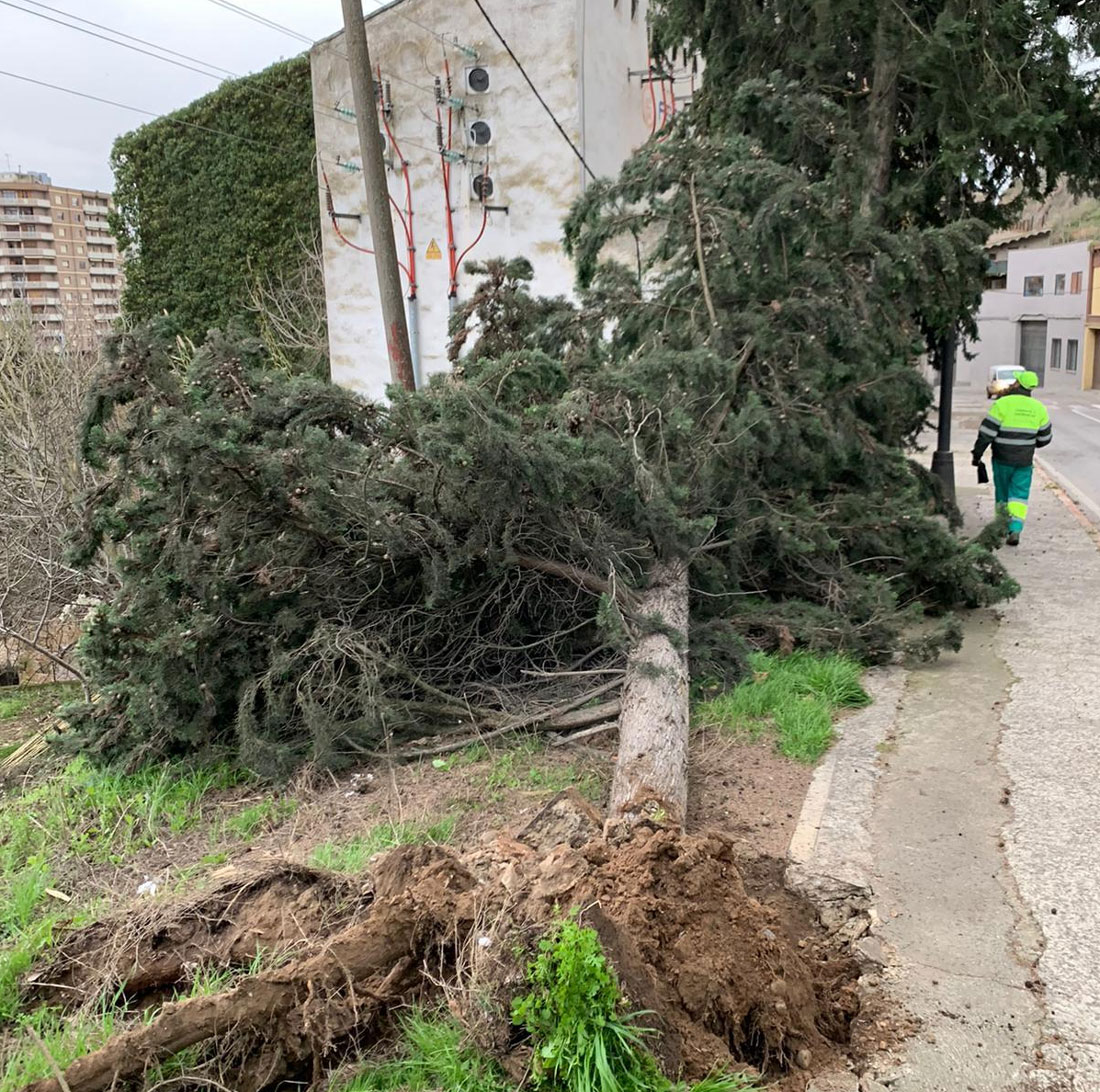 El temporal de vent va provocar ahir desperfectes a Balaguer com la caiguda de murs, un dels quals va ferir una persona. També van caure diversos arbres, un d'aquets ha obligat a tancar el cementiri vell fins assegurar la zona.