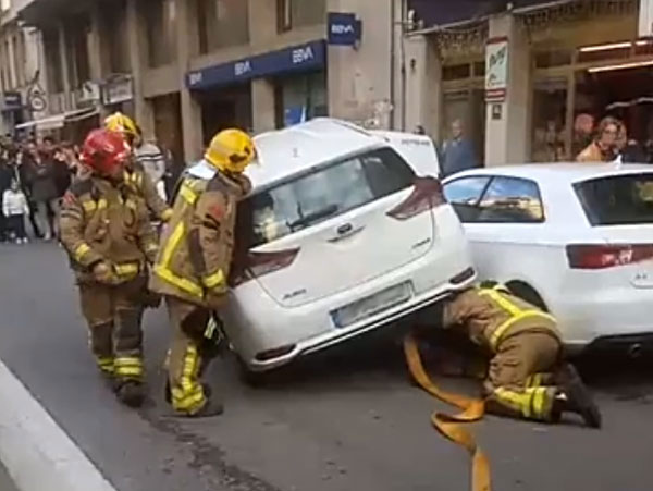 Un vehicle ha col·lidit al Passeig de l'Estació contra els vehicles estacionats. Els bombers han hagut d'intervenir per baixar el cotxe que estava parcialment a sobre d'un dels vehicles estacionats.