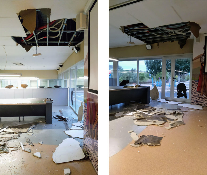 La intensa pluja caiguda ahir a Balaguer fa caure part d'un sostre fals al Centre d'Interpretació de l'Or del Segre. És l'incident més important en equipaments a la capital de la Noguera on es van acumular 120l/m2