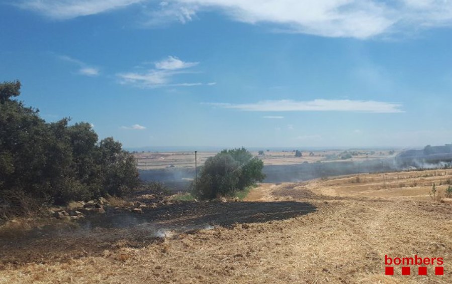 Els Bombers van haver d'intervenir per extingir un incendi en camps de conreu a Castelló de Farfanya. Per controlar el foc van ser necessàries 8 dotacions terrestres i 2 mitjans aeris