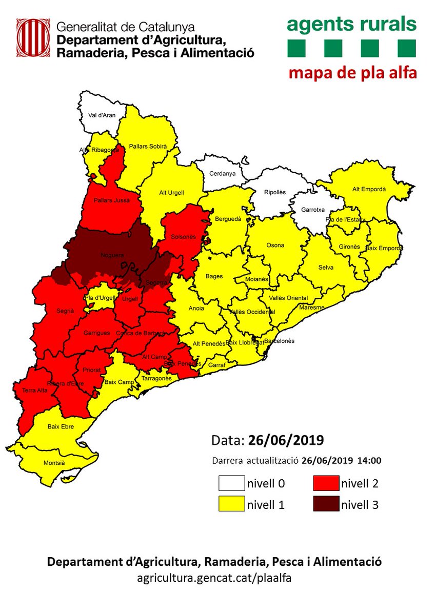 El risc d'incendis obliga a tancar dijous els accessos al Montsec i divendres al Montsant i als Ports de Tortosa. Es preveu que gairebé totes les comarques superin el llindar de temperatures extremes durant tres dies consecutius
