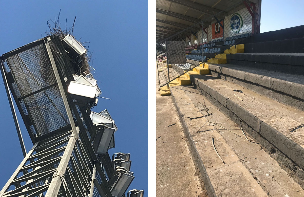 Ahir es va retirar un niu de cigonya d'una de les torres d'enllumenat del camp de futbol de Balaguer, pel perill imminent de la seva caiguda al carrer Urgell