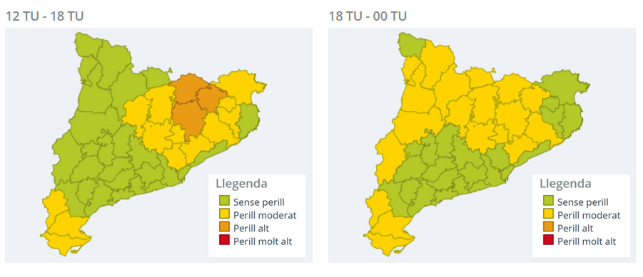 Activada la prealerta de l'Inuncat per previsió de tempestes a partir del migdia arreu del país excepte a Tarragona. Els xàfecs poden deixar 20 litres en només mitja hora en alguns indrets sobretot a la meitat nord del país