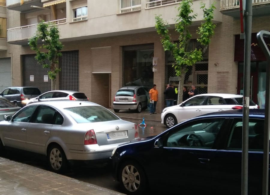 Un cotxe ha acabat encastat a l'aparador d'una botiga del carrer Barcelona de Balaguer aquest matí.