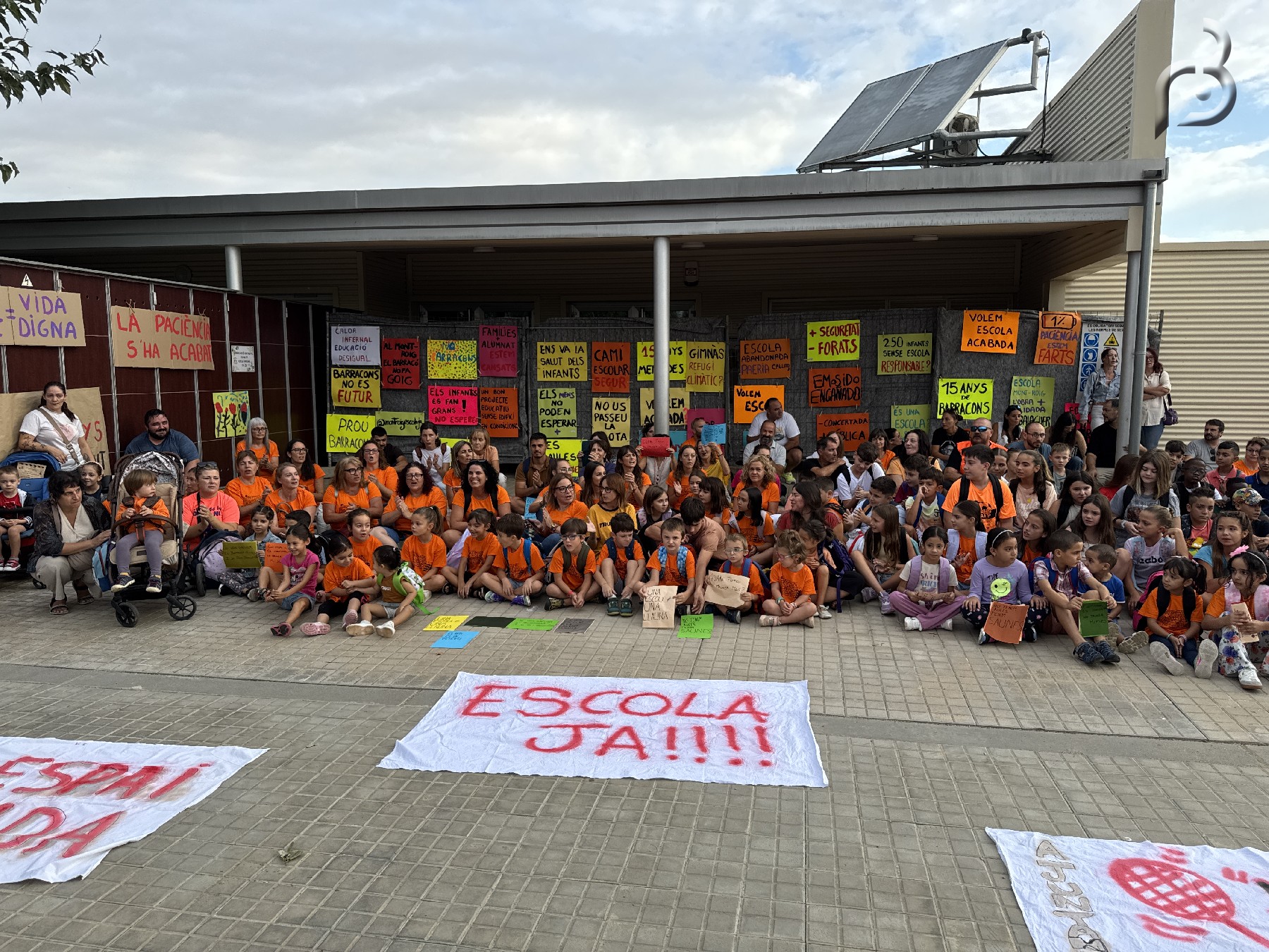 Han estat desenes de persones entre alumnat, professorat i famílies, les que s'han donat cita per protestar pel retard en l'inici d'aquesta obra, que preveu la retirada dels mòduls prefabricats i la continuació del propi edifici albergant noves aules, menjador, gimnàs, vestidors així com una pista esportiva i zones verdes.