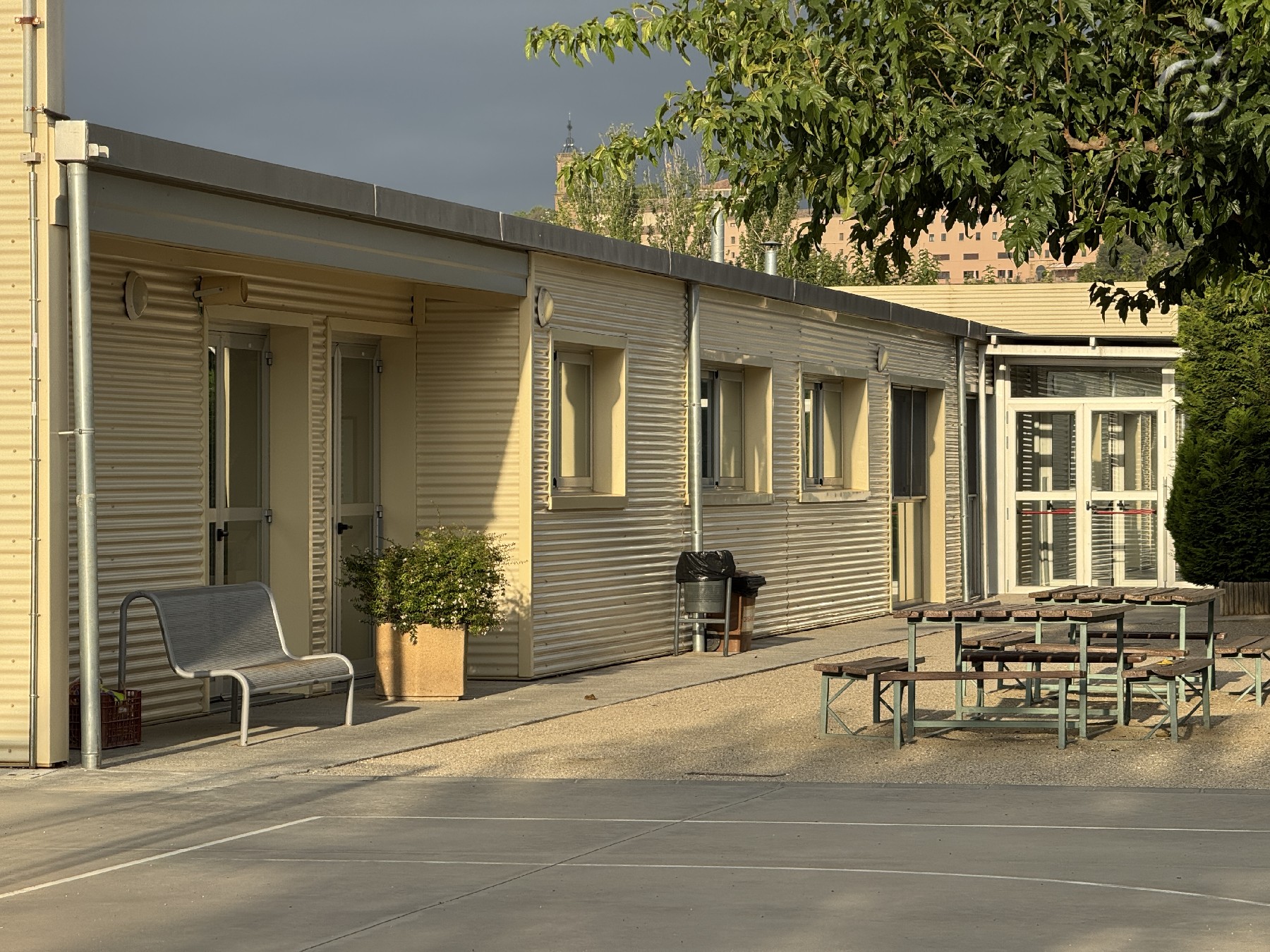 Ana Soriano, membre de l'AFA, explica que no poden fer classes en condicions, amb infants que han d'estar al menjador a 38 graus o que no disposen de gimnàs, havent de patir les inclemències meteorològiques.