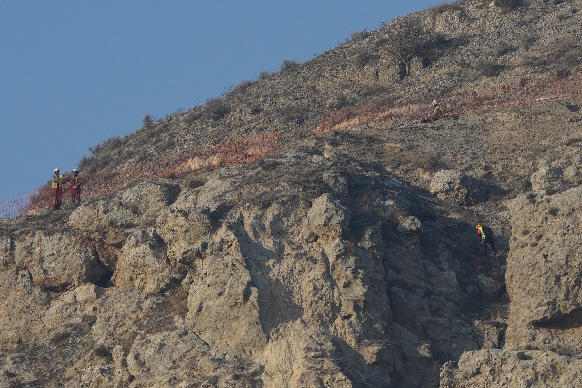 En aquesta actuació els operaris col·locaran una xarxa metàl·lica i segellaran la part superior de la penya a la muntanya. De moment s'ha començat a posar vies per fer treballals en vertical.