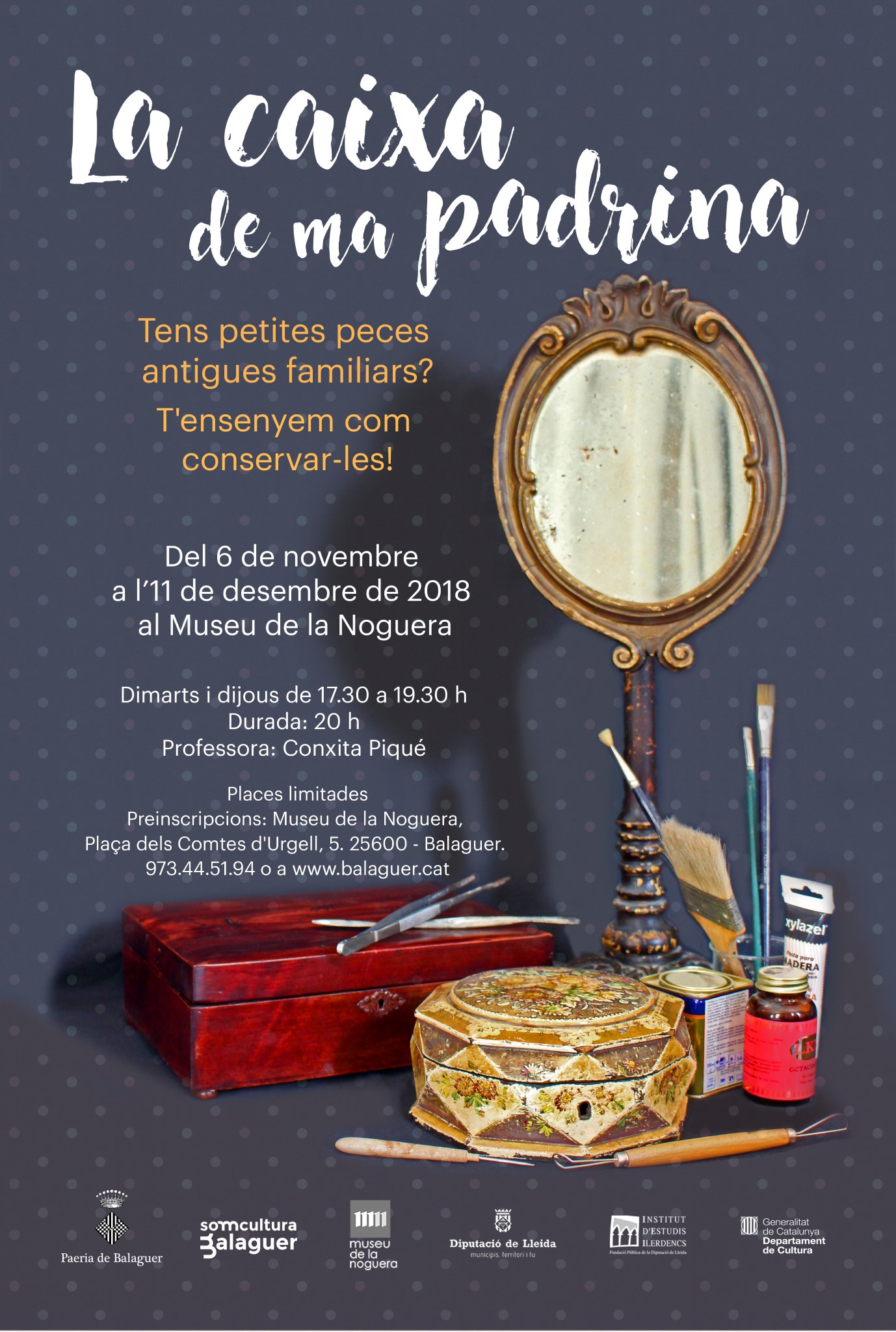 Del 6 de novembre a l'11 de desembre tindrà lloc al laboratori del Museu de la Noguera un taller per aprendre a conservar petits objectes familiars anomenat La caixa de ma padrina.