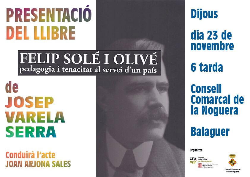 Demà es presenta el llibre 'Felip Solé i Olivé, pedagogia i tenacitat al servei d'un país'. L'acte es farà al Consell Comarcal de la Noguera a les 18h.
