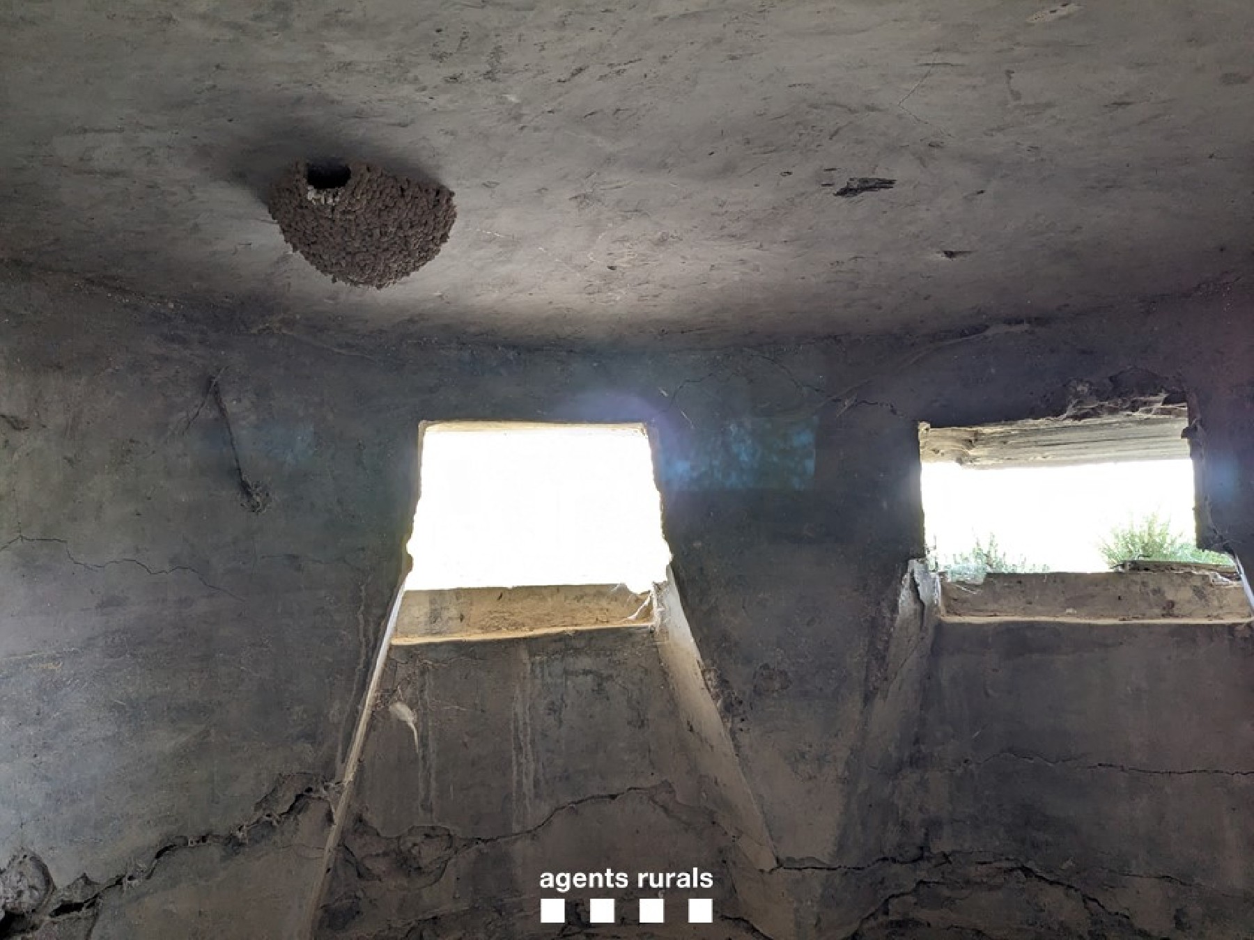 A l'interior hi van descobrir un niu d'oreneta cua-rogenca (Hirundo daurica), una espècie protegida.