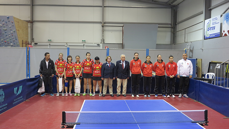En el primer partit Tingting Wang va caure 1 a 3 davant la russa Polina Mikhaylova, número 15 del rànquing europeu, amb un joc molt incomòde per a una jugadora defensiva com Tingting. Més difícil ho va tenir encara Yan Lan Li, que va caure per 0 a 3 davant la jugadora d'origen xinès Melek Hu, número 7 d'Europa. I, finalment, Anna Biscarri cedia pel mateix resultat de 0 a 3 davant la també russa Maria Dolgikh (6-11, 2-11, 4-11).