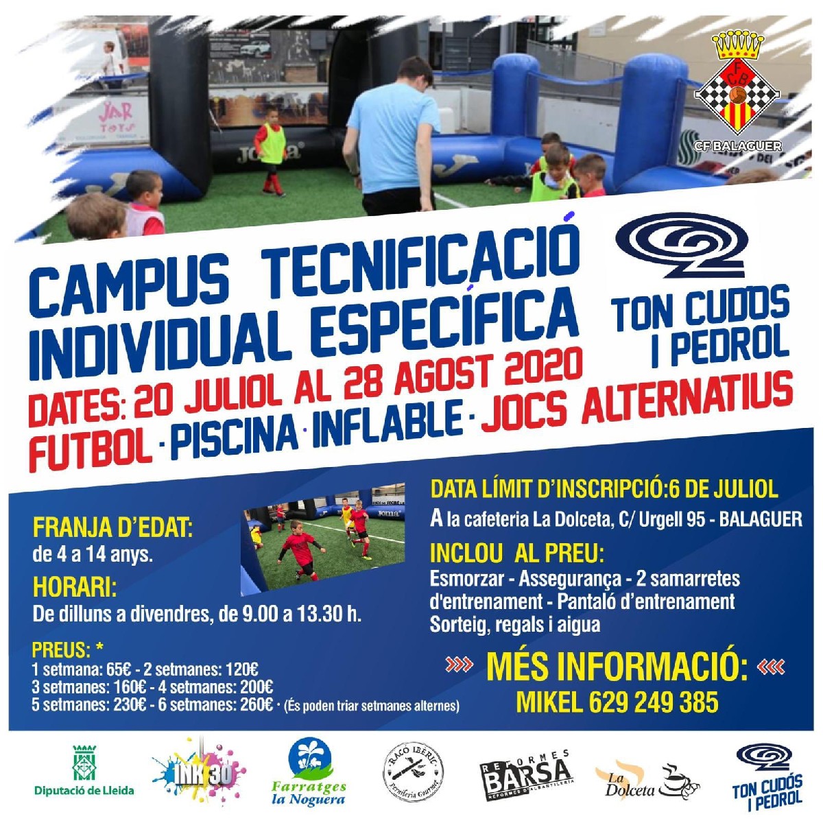 El Club Futbol Balaguer ha començat les inscripcions per al campus d'estiu 2020. Un any més, tot i la situació actual, des del club es torna a donar l'oportunitat de gaudir del futbol formatiu a l'estiu.