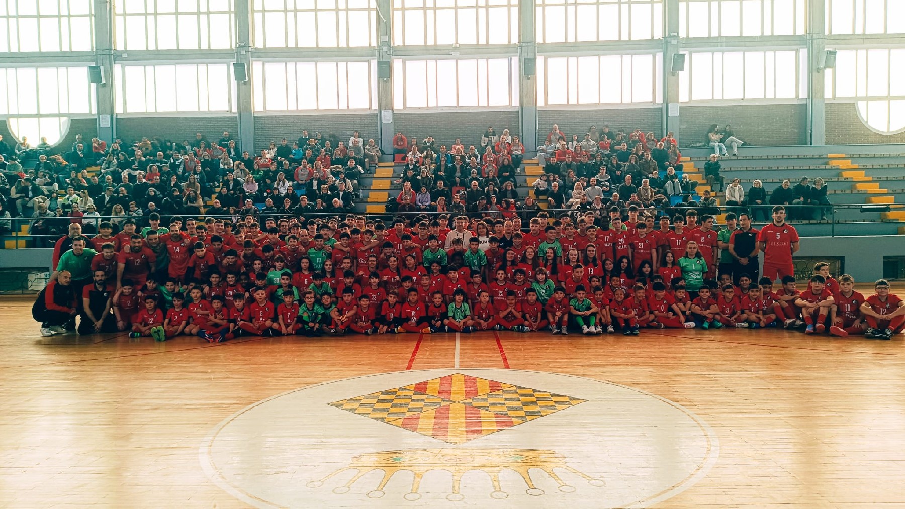 El Club Futbol Sala Balaguer Vedruna presenta els 17 equips d'aquesta temporada i ret homenatge a Albert Camps, que es retira després de 18 anys