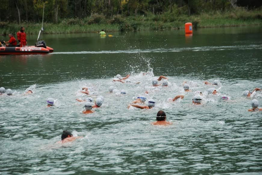 El pantà de Sant Llorenç es va omplir ahir de nedadors, 150 concretament, en motiu de la 7a edició de la Travessia al pantà de Sant Llorenç i la 4a del Pantathó 7.0.