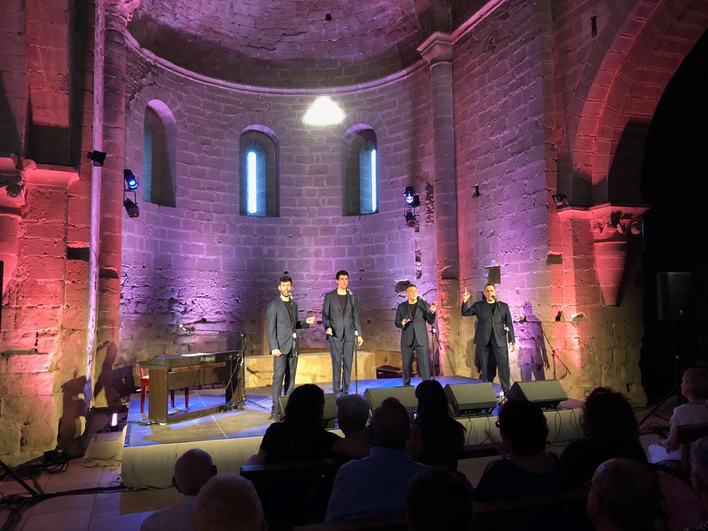 El monestir de Santa Maria de les Franqueses ha estat escenari aquest diumenge 21 de juliol del darrer concert del 8è cicle Juliol de Música i Poesia amb 'The Gourmets vocal quartet', format per les veus tenores d'Àlex Delgado i Jordi Vallespí, el baríton Xavier Mestres i el baix Abel García.