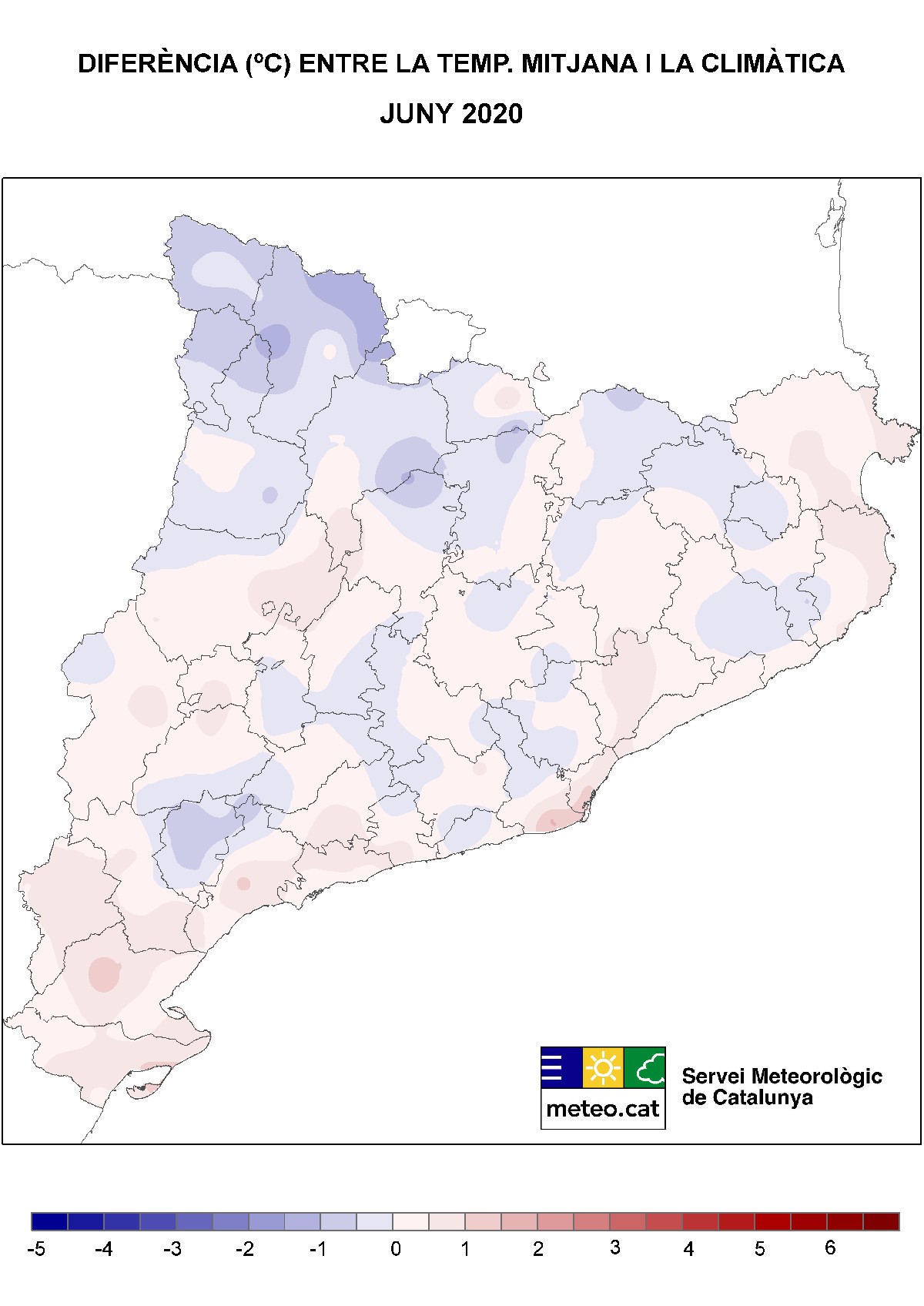 Aquestes anomalies de temperatura han estat fruit de les dues configuracions sinòptiques que han predominat a Catalunya: temperatura per sota de la normal climàtica durant els primers vint dies del mes com a conseqüència de les pertorbacions que van visitar el país, i anomalies càlides durant el darrer terç del juny en relació amb la dorsal i la massa d'aire relativament càlida que va afectar el Principat. Cal remarcar l'elevada temperatura nocturna del 30 de juny, quan es va registrar la mínima més alta de la sèrie d'un mes de juny a 8 de les 146 estacions de la XEMA amb més de 10 anys de dades. Són estacions bàsicament ubicades a l'interior del territori i Pirineu.