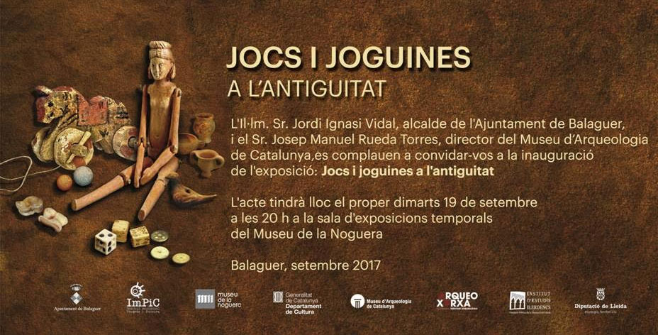 En el marc de l'exposició "Jocs i Joguines a l'antiguitat", produïda pel Museu d'Arqueologia de Catalunya a través d'Arqueoxarxa, el Museu de la Noguera ha previst per aquest proper dissabte una xerrada-taller sobre "Els jocs l'antiguitat" per tal que tota la família descobreixi la importància del joc en les diferents cultures i al llarg del temps. Els assistents aprendran i gaudiran jugant a jocs tradicionals i mil·lenaris que han perdurat des de l'antiguitat.