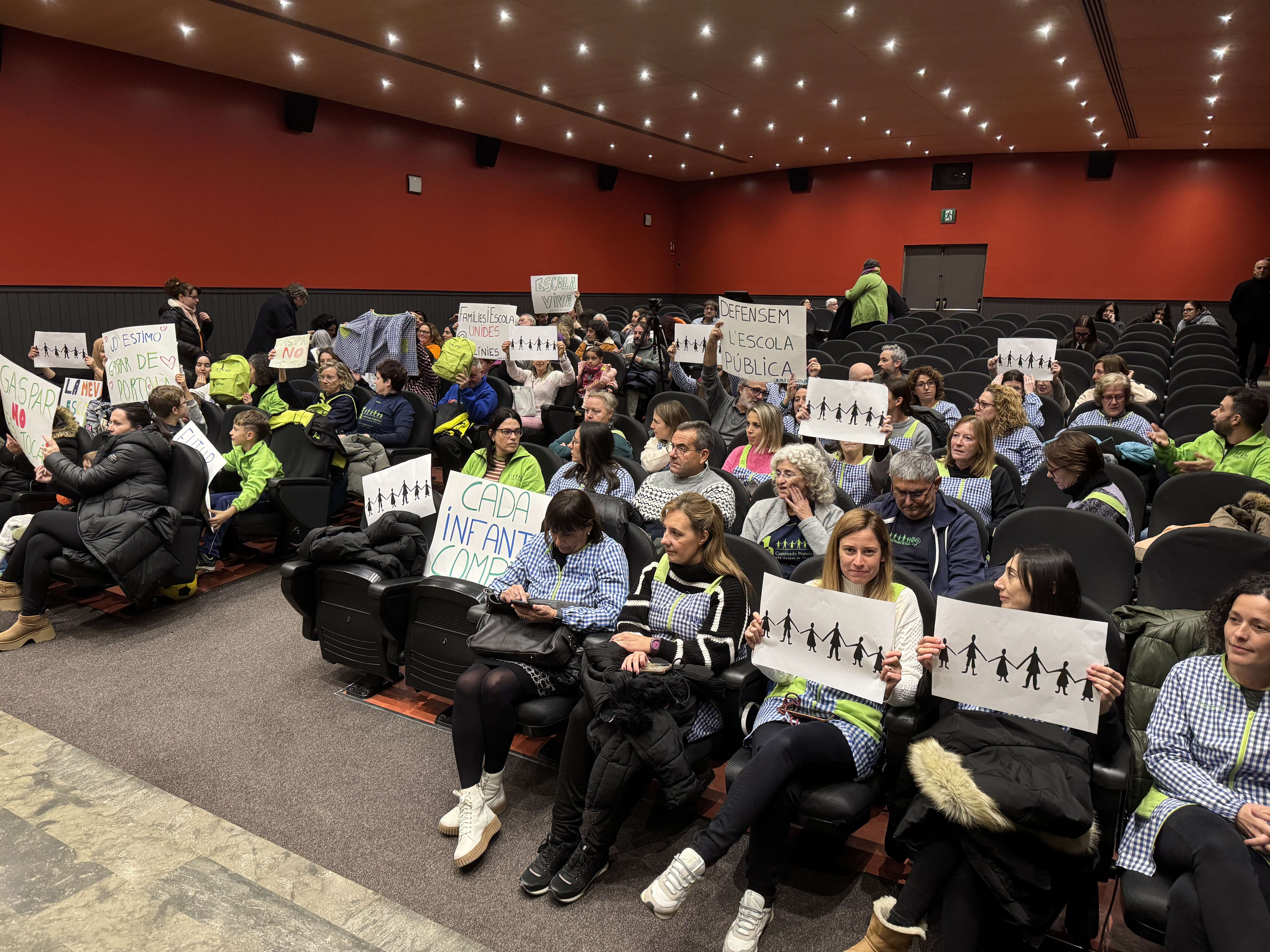 El ple ha comptat amb la presència de prop d’un centenar de membres de la comunitat educativa de l’Escola Gaspar de Portolà, entre professorat, alumnes i famílies, que han mostrat el seu rebuig al possible tancament d’una de les línies d’I3 del centre el curs vinent, una mesura que podria afectar directament el centre i les famílies que en formen part. La proposta, coneguda a finals d’octubre, planteja reduir una de les dues línies del Gaspar de Portolà per als infants nascuts el 2023, un escenari que el professorat i l’AMPA consideren “injust i perjudicial” per a un projecte educatiu amb 54 anys d’història.