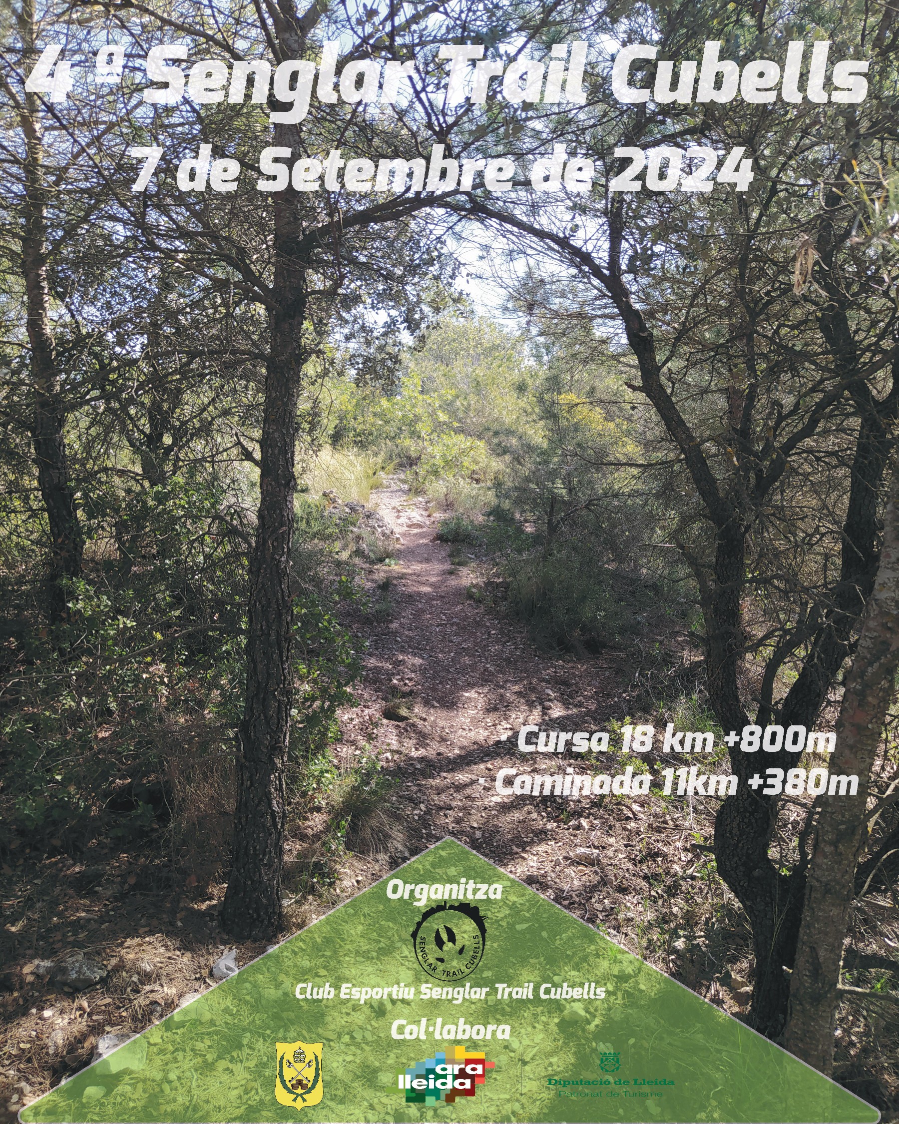 El proper dia 7 de setembre tindrà lloc la quarta edició de la Senglar Trail de Cubells, organitzada pel Club Esportiu Senglar Trail Cubells. Es tracta d'una prova puntuable per a la Lliga de la Noguera que ja compta amb força inscrits