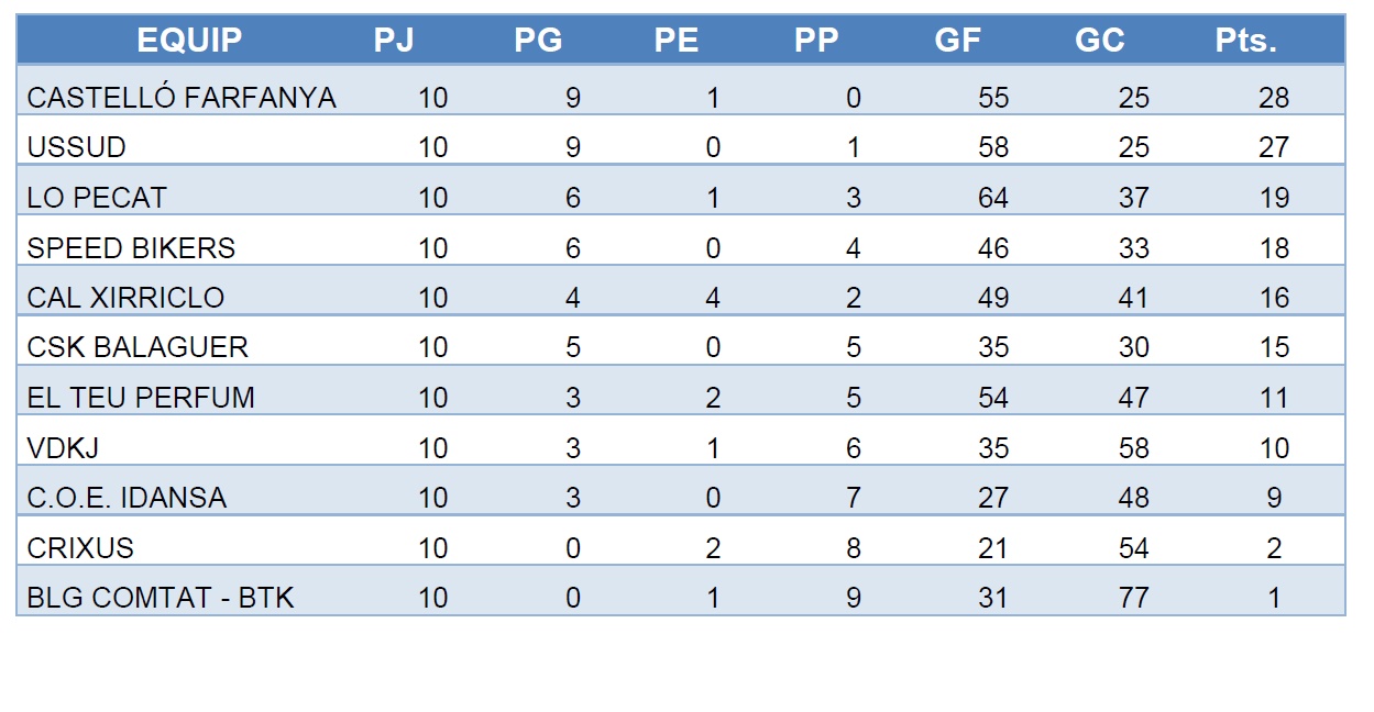 L’EFS Comtat d’Urgell cau amb l’Alforja (5-6) en un partit amb molta polèmica. A Primera Divisió, el Balaguer Vedruna no pot amb el Cervera (10-5), mentre que el Comtat B perd per la mínima amb el Llardecans (4-5)