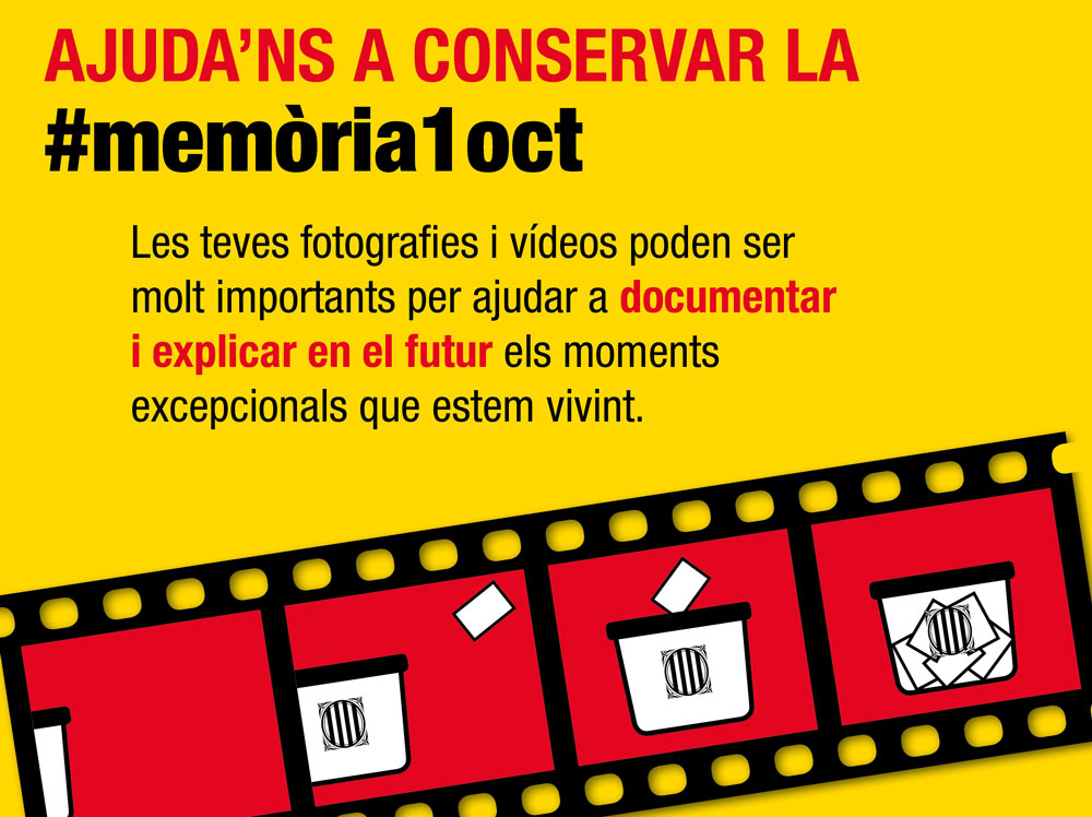 El Departament de Cultura ha posat en marxa un sistema de recollida per tal de preservar i conservar els materials relacionats amb la jornada del passat 1 d'octubre. Així, els ciutadans que disposin de testimonis escrits, sonors, gràfics i visuals relacionats amb el dia del referèndum o amb les jornades posteriors poden adreçar-se a qualsevol dels arxius, biblioteques i museus que hi ha arreu del territori català per depositar-los.