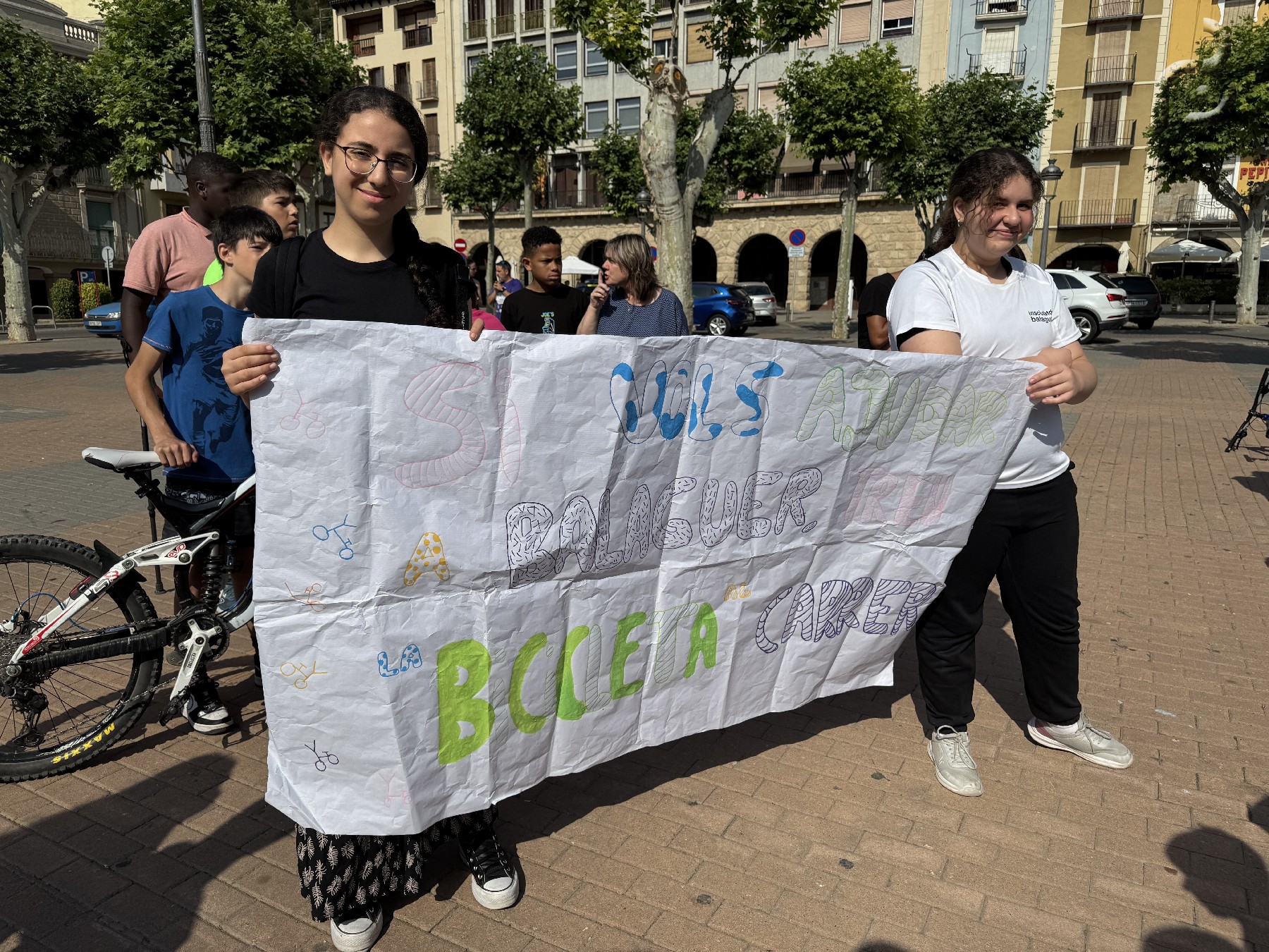 Per la seva banda, l'alumnat de l'Institut Ciutat de Balaguer ha fet una bicicletada simbòlica per presentar un estudi complet per a la creació d'un carril bici a la ciutat. El projecte analitza l'impacte ambiental de l'ús excessiu del cotxe, promou l'ús de la bicicleta i inclou un mapa detallat amb una proposta de traçat. A més, els alumnes han llegit una carta explicant els motius i els beneficis de la seva iniciativa. Segons ha explicat Xènia Torrent, una de les alumnes de l'Institut Ciutat de Balaguer, diu que van decidir centrar-se en el carril bici per fomentar un Balaguer més saludable, un projecte que ja han presentat a escoles de Mollerussa i ara volien fer arribar la proposta a la Paeria.