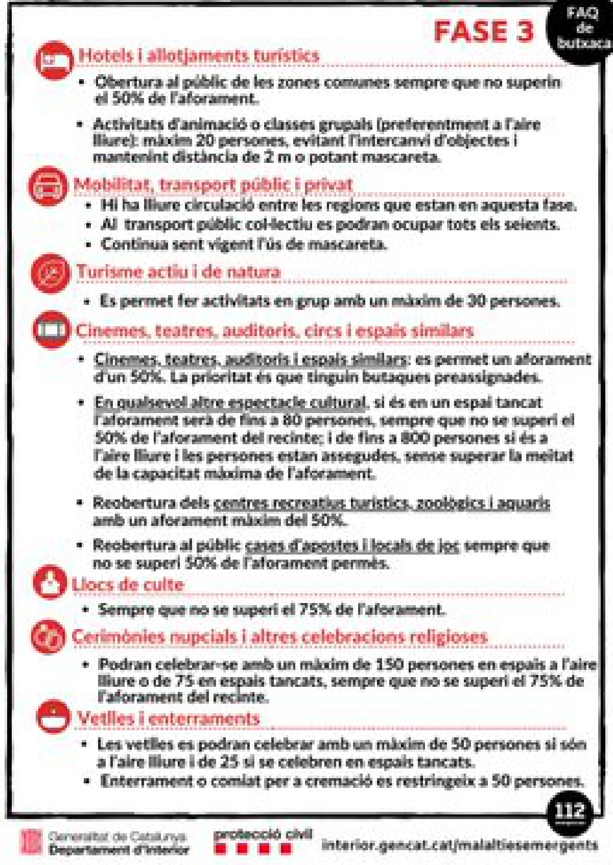 La fase 3 permet reunions de fins a 20 persones –sempre mantenint les distàncies de seguretat- i l'obertura de barres de bars o l'ampliació de l'aforament de les terrasses exteriors de fins al 75%.