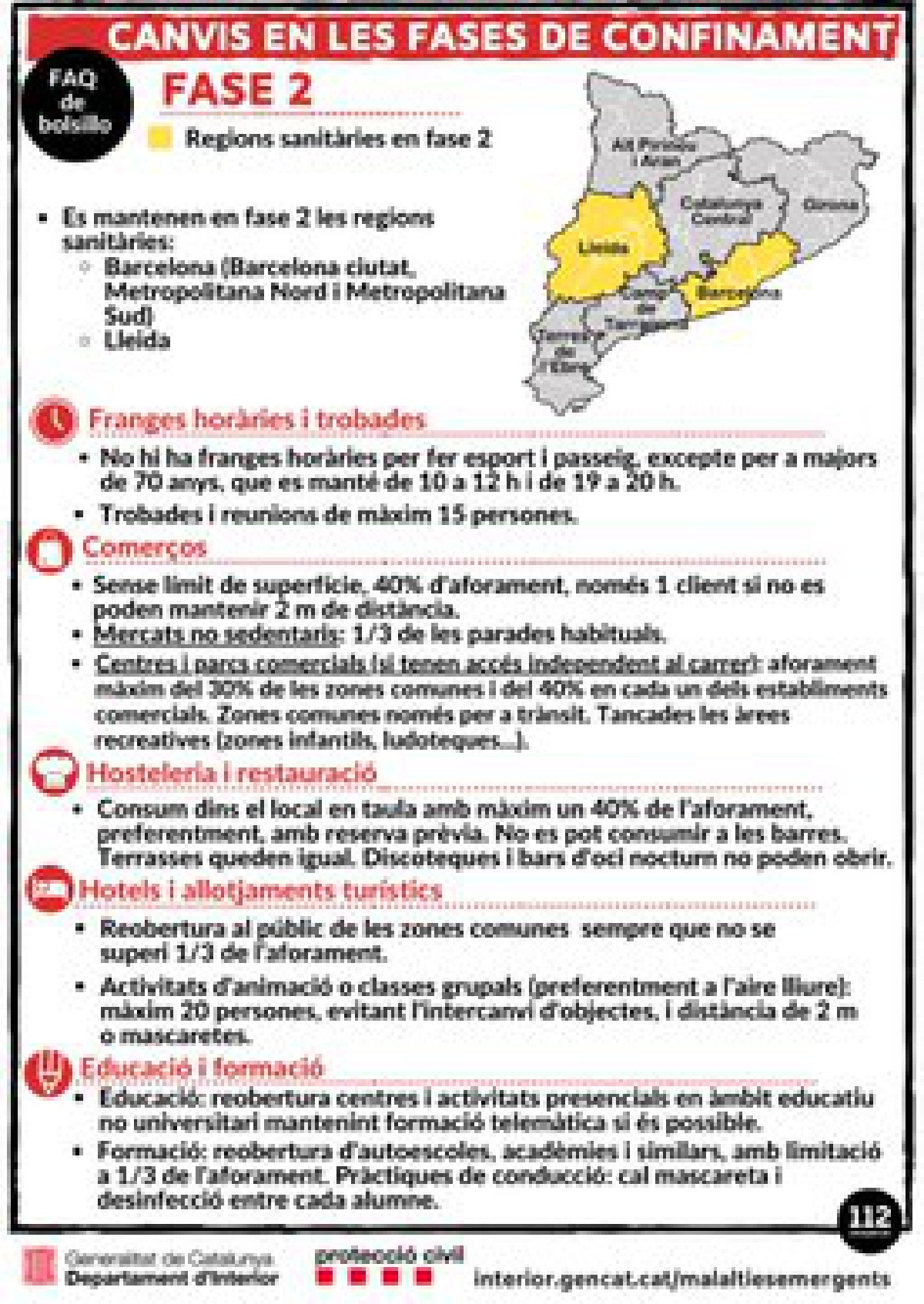 Les regions sanitàries de Girona i Catalunya Central passen aquest dilluns a fase 3 i només quedaran en fase 2 la regió metropolitana de Barcelona i Lleida. Ara bé, el Procicat aprovarà aquest dilluns a proposta del Departament de Salut reclamar que aquestes dues regions sanitàries avancin de fase abans del cap de setmana, de forma que, si el Ministeri de Sanitat ho accepta, tota Catalunya estarà ja en l'última fase i sota competència del Govern. Salut al·lega que si no ho ha demanat fins ara és perquè necessitava uns dies per veure l'evolució de l'epidèmia. A més, a partir d'aquest dilluns la mobilitat estarà permesa entre totes les regions que estiguin en l'última fase.